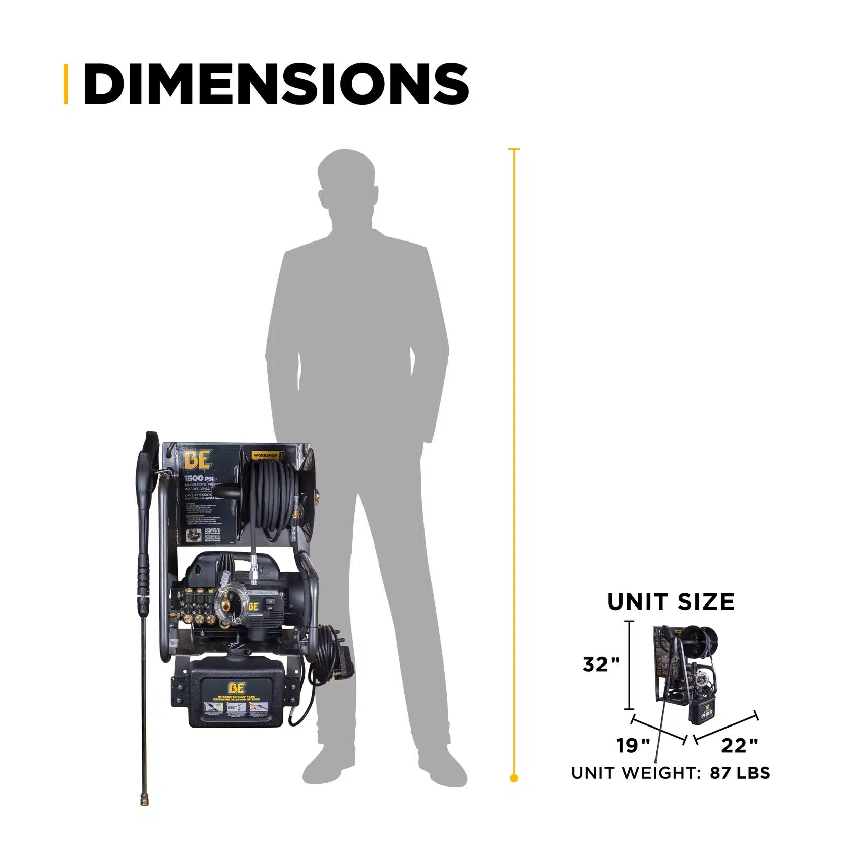 The 1,500 PSI – 1.6 GPM Electric Pressure Washer is a versatile and durable unit perfect for both indoor and outdoor cleaning, featuring a Powerease motor and high-performance Triplex pump.