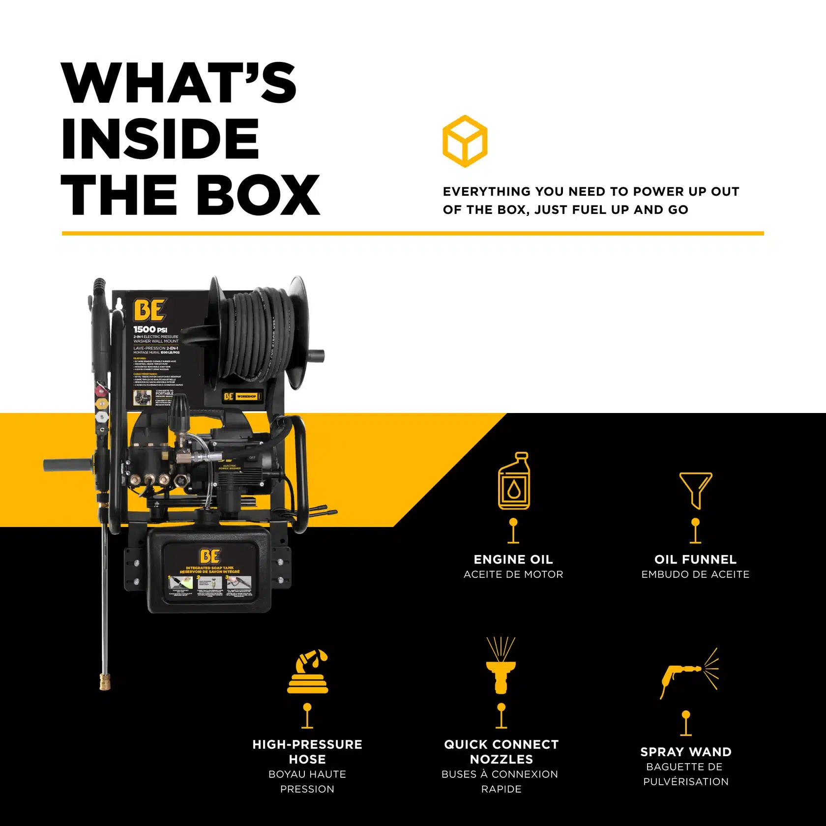 - Comprehensive Accessories: Comes with a high-pressure hose, spray gun wand assembly with a variable nozzle for immediate use.