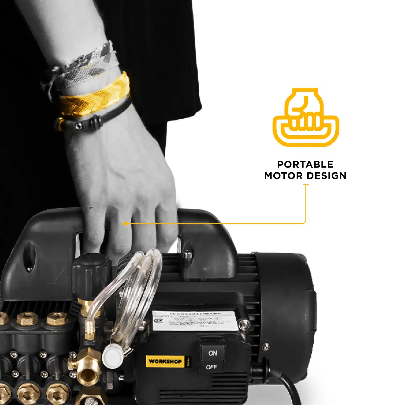 - Triplex Pump: Features a forged brass manifold and ceramic-coated pistons for long-lasting performance.